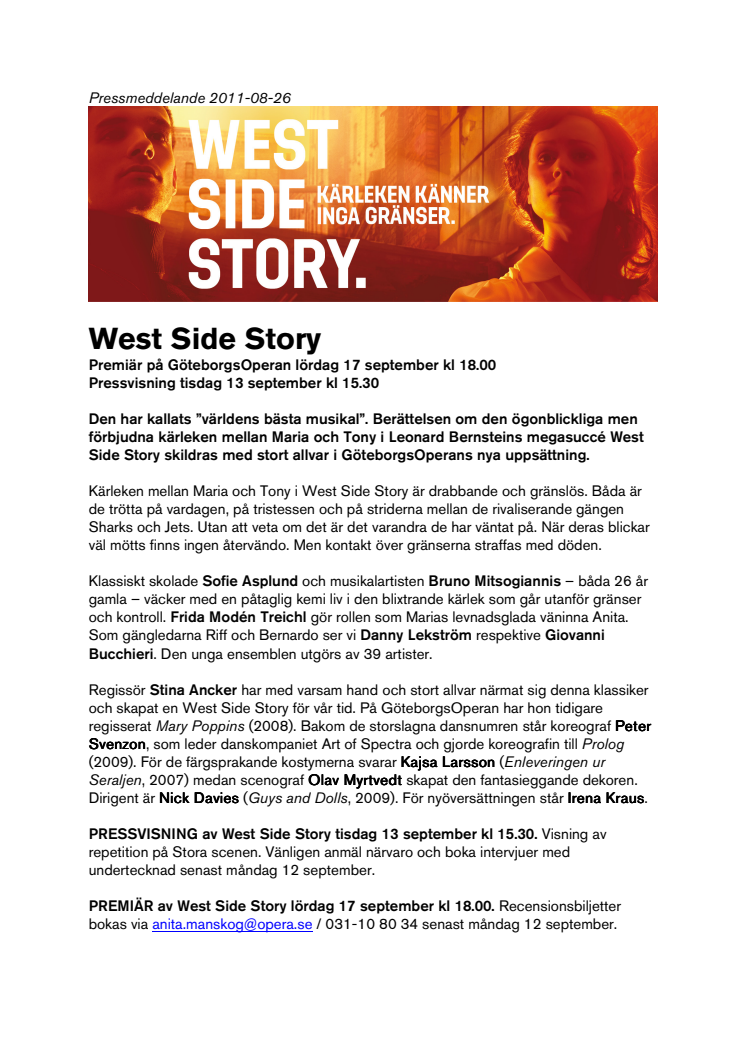 Den har kallats ”världens bästa musikal”. Berättelsen om den ögonblickliga men förbjudna kärleken mellan Maria och Tony i Leonard Bernsteins megasuccé West Side Story skildras med stort allvar i GöteborgsOperans nya uppsättning.