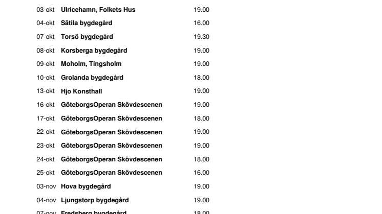 Speltid ca 2 tim inkl paus. Pressbilder finns på www.pressbild.com fr o m 11/9.