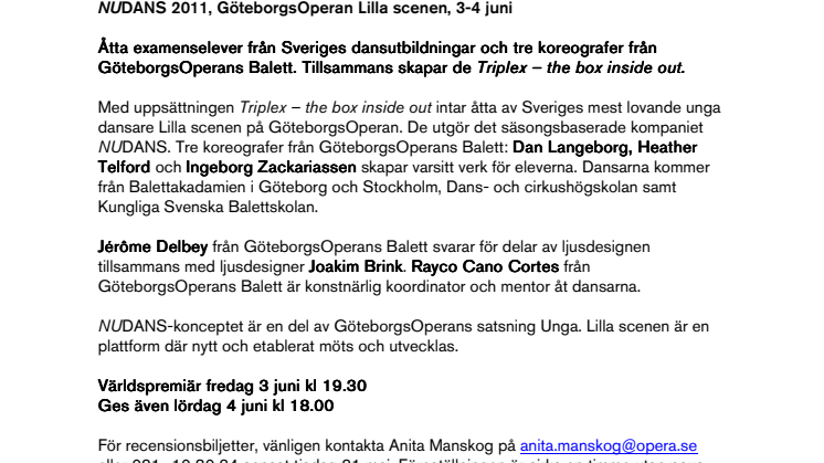 NUDANS 2011, GöteborgsOperan Lilla scenen, 3-4 juni
