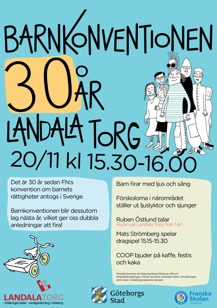 Affischen som bjuder in till firandet av Barnkonventionen den 20 november i Rutan, Landala Torg