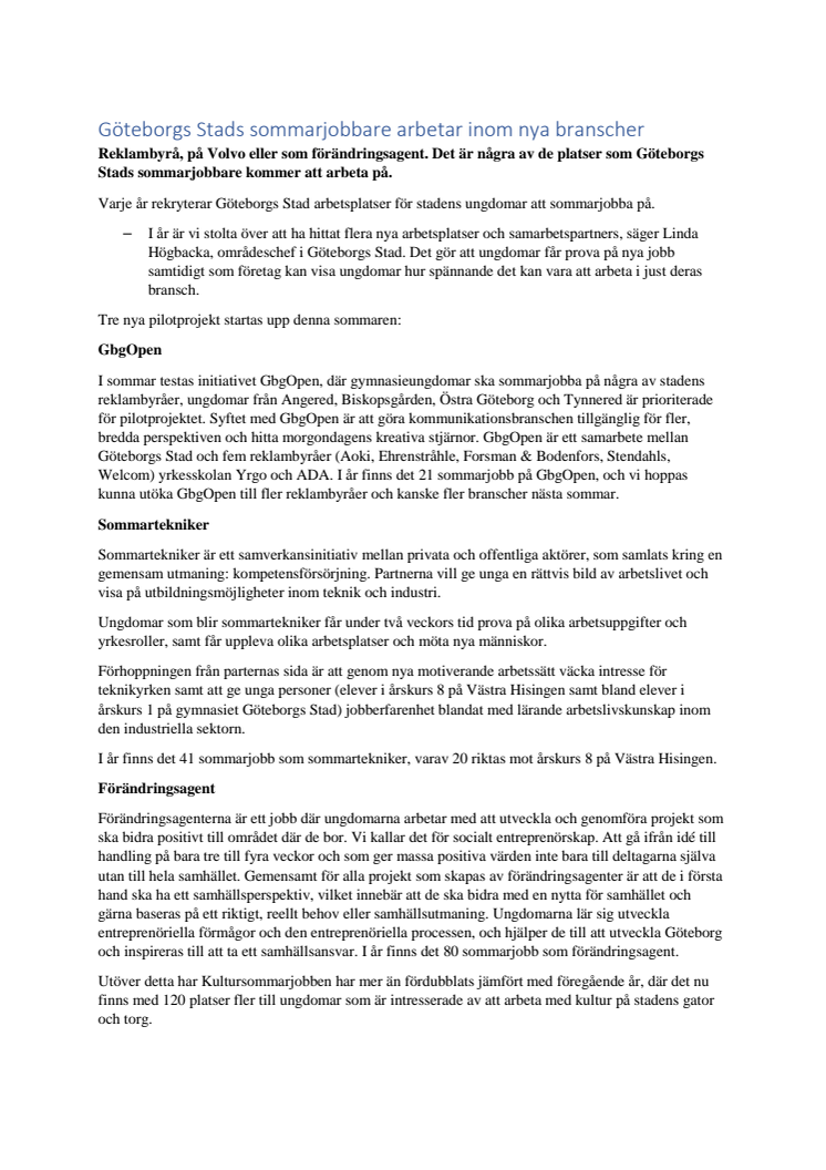 Reklambyrå, på Volvo eller som förändringsagent. Det är några av de platser som Göteborgs Stads sommarjobbare kommer att arbeta på.