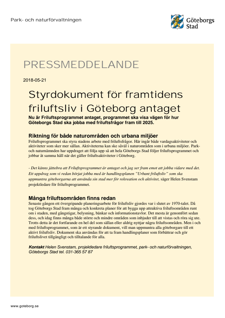 Styrdokument för framtidens friluftsliv i Göteborg antaget