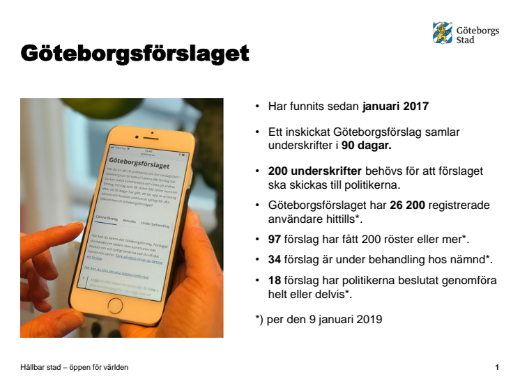 De två första åren med Göteborgsförslaget har genererat en mängd förslag av olika karaktär, liksom såväl glada som kritiska reaktioner. Inriktningen framåt är att fler ska hitta in till Göteborgsförslaget, men även att beslutsprocesserna i kommunen och återkopplingen ska bli tydligare för den som lämnar ett förslag.