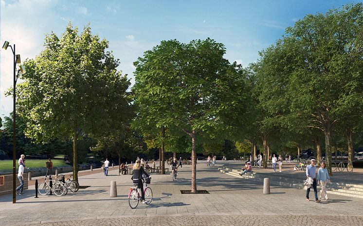 Basargatan. Vy från Basargatan västerut mot föreslagna torget-platsen mellan Vallgraven och Kungstorget. Visionsbild ÅWL Arkitekteroch Göteborgs Stad.jpg