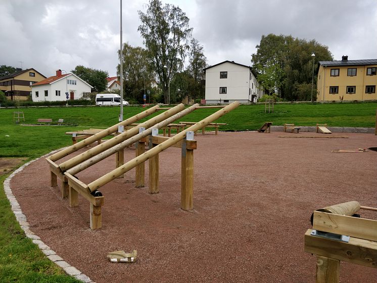 Överblick över Dalens utegym i Slottsskogen som sköts av idrotts- och föreningsförvaltningen, Göteborgs Stad.