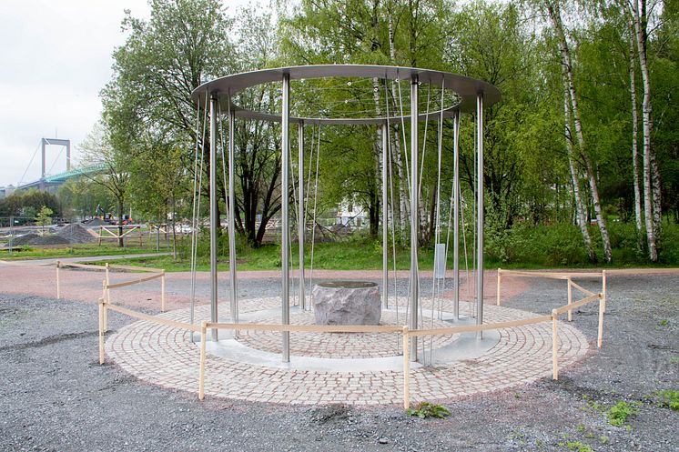 Ebba Matz konstverk för veteraner, "Under samma himmel", nyligen installerat i Färjenäsparken.