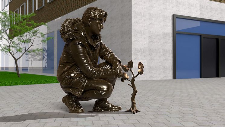 Skulpturen ”Ett frö gror i en människosjäl” är delvis inspirerad av de många ensamkommande pojkar och män som kom till Sverige under flyktingkrisen 2015.