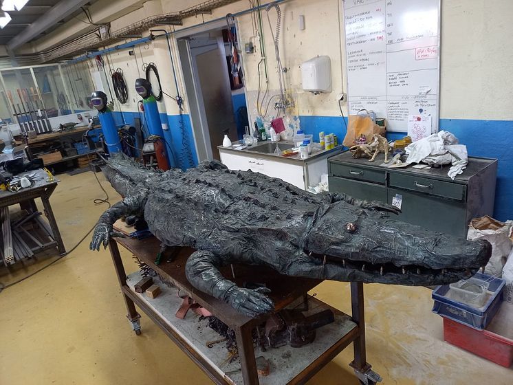 Ingela Ihrmans skulptur "Kortedalakrokodilen", här på Vadstena konstgjuteri. Installeras och invigs i Göteborg 26 maj.