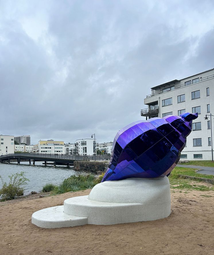 ”Purpursnäckan” av konstnärsduon Bigert & Bergström. Skulptur på Sannegården. Finansiär och processledare genom enprocentregeln: Familjebostäder.
