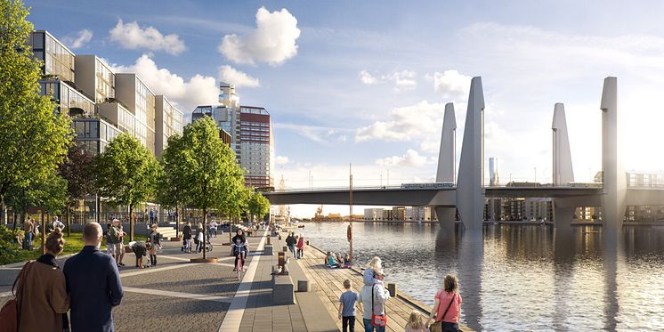 Hisingsbron sedd från kajstråket i Centralenområdet
