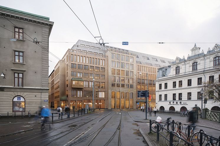 Visionsbild för detaljplan Inom Vallgraven, vy från Hotell platsen.