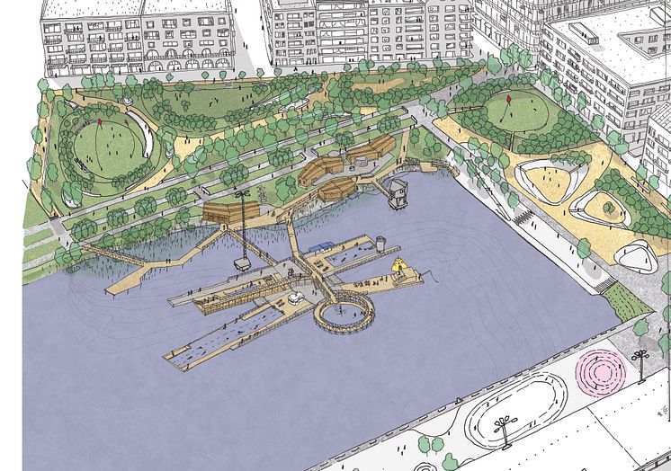 Visionsbild, illustrations Jubileumsparken, Frihamnen