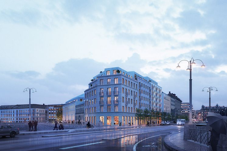 Visionsbild över om- och tillbyggnad av kvarteret Röda Bryggan.