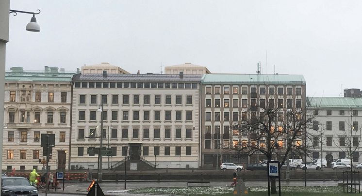Visualisering av ombyggnad av fastigheten Nordstaden 13:4 till hotell. Påbyggda gårdsfastigheter.