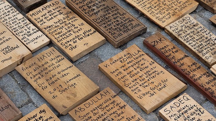 Verket består av 500 handskrivna brädor med minnestexter om dem som saknas. Konstverket handlar också om den fantastiska bro som byggdes mellan människor i Sverige och nyanlända. Texterna är från alla dem som öppnade sina hem och hjärtan för att ge dessa unga flyktingar en trygg plats. Texterna konfronterar oss och blir ett hjärtskärande vittnesmål om något som aldrig får upprepas. Marit Törnqvist vill också lyfta att ansvariga politiker reducerar dessa människor till siffror trots att de är vänner och familjemedlemmar, skolkompisar och arbetskamrater. Läs Marit Törnqvists brev i Expressen till Magdalena Andersson.