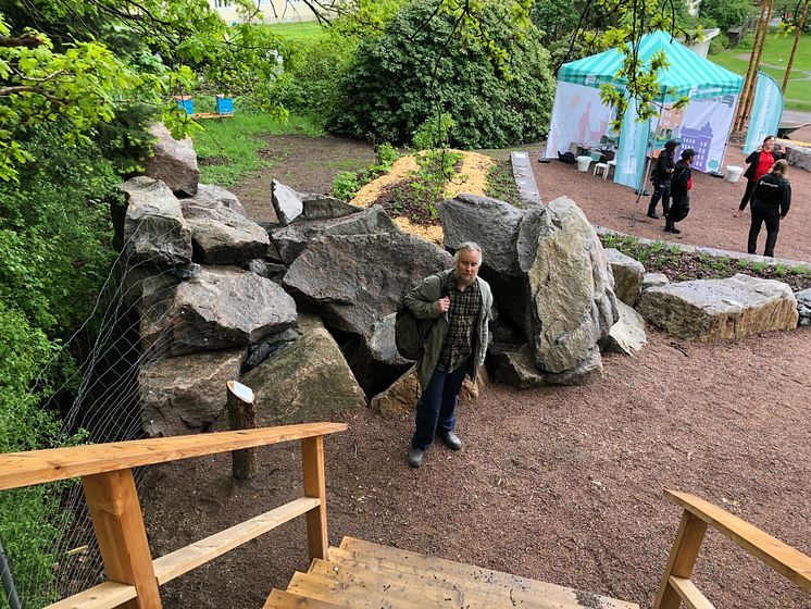 I samband med att en ny skogsträdgård tillkom i Fjällbo park skapade Johan Tirén en konstgestaltning av helt organiska material. Vid bergsmassivet vid sidan av trädgården syns ett stenras, som letar sig in i trädgården och övergår till anlagda blockstensmurar. Med tiden blir stenarna mer och mer en integrerad del av trädgården. På stenarna kommer olika arter av lavar och mossa att etablera sig, i sprickorna kommer insekter och groddjur finna en plats, frön att gro och växter slå rot. Verket berör på så sätt centrala frågor kring klimat och miljö, och vårt förhållningssätt till naturen som en resurs.