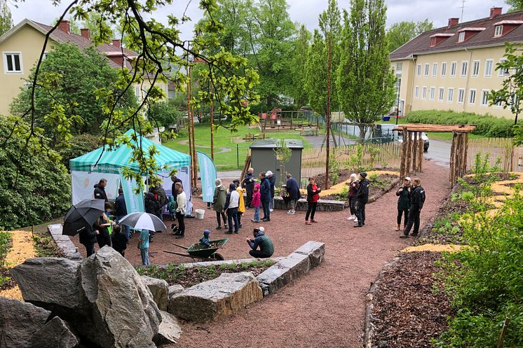 Konstgestaltningen började installeras förra året men stod klar i år. Den är finansierad av fastighetskontoret, Seniorgården och park-och naturförvaltningen genom enprocentregeln.