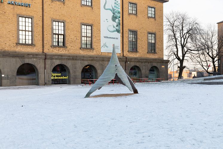 Skulpturen står utanför Sjöfartsmuseet Akvariets nya enté och har precis som museet en stark koppling till havet och hur människan påverkar det. I skulpturens skrovliga ytskikt syns spår av snäckor, tång och mollusker, men också fossilerat skräp, som gamla kapsyler, plastflaskor och munskydd. Inuti är ytan pärlemorskimrande, som i ett snäckskal.