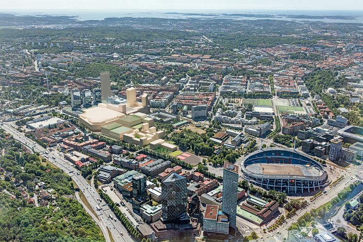 Visionsbild över evenemangsområdet. Illustration: Göteborgs Stad”.