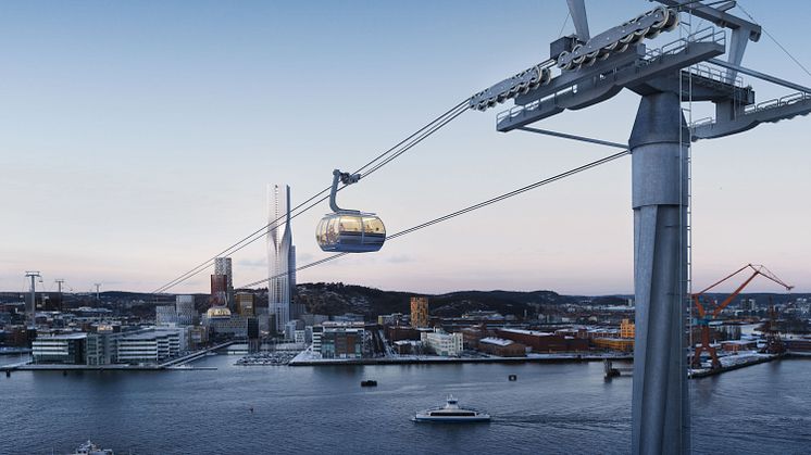 Nu bjuder Göteborgs Stad in till arkitekttävling om hur stationerna, tornen och gondolerna på den planerade linbanan mellan Järntorget och Wieselgrensplatsen ska se ut.