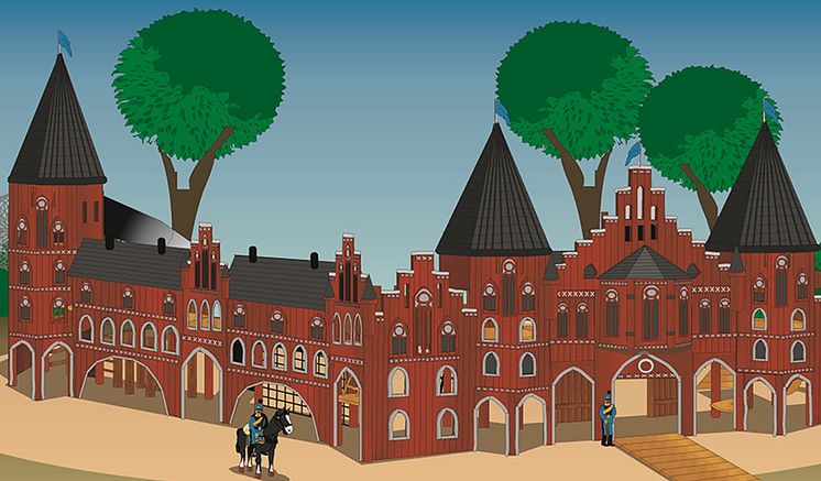 Lekplatsen får specialbyggda attraktioner som följer temat Kvibergs kaserners slottsliknande byggnad. Den ska locka till lek och aktivitet i åldrarna upp till 15 år. Här kommer finnas konstgjorda hästar att klättra på och en käpphästbana med hinder, men också, rutschkanor, studsmattor, sandlåda, gungor, karusell, linbana och mycket annat. Där anläggs också sittplatser, picknickbord och fruktträd.