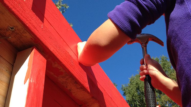 -Jag har jobbat med barn i många år och det finns inga barn som inte gillar att snickra och hamra, de springer direkt fram till verktygen, säger Marie-Louise Bergström, fritidsassistent på Bygglekplatsen.