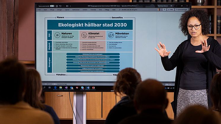 – Det här miljö- och klimatprogrammet blir paraplyet som styr stadens arbete framåt mot en ekologiskt hållbar stad. Tillsammans med miljöledningssystemet blir det ett kraftpaket som systematiserar arbetet i staden. Förvaltningar och bolag kommer kunna planera, genomföra, följa upp, förbättra miljöarbetet och prioritera de åtgärder som ger störst effekt, säger Emmyly Bönfors.