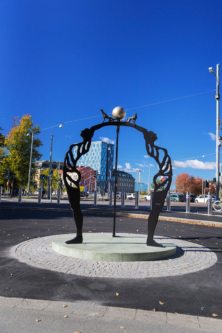 Konstverket hämtar inspiration från nordisk mytologi: Urd, Skuld och Verdandi är namnen på tre ödesgudinnor, nornor, som står för dåtid, framtid och nuet.
