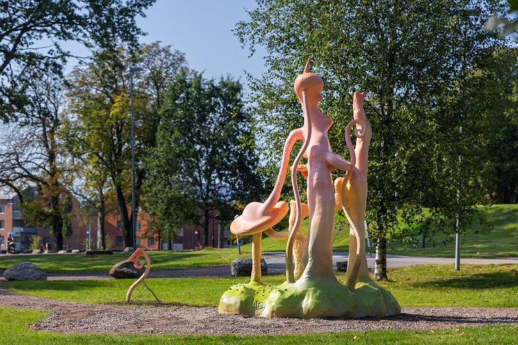 – Formmässigt har jag velat leka med gestalter, svampar, rörliga och märkliga former. Målet var att skapa något som känns utomjordiskt och förbryllande, men ändå bekant. Jag vill att det ska fungera som ett monument av ett slags framtidens fossil, fast i nutid, säger Åsa Cederqvist.
