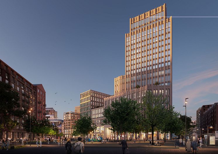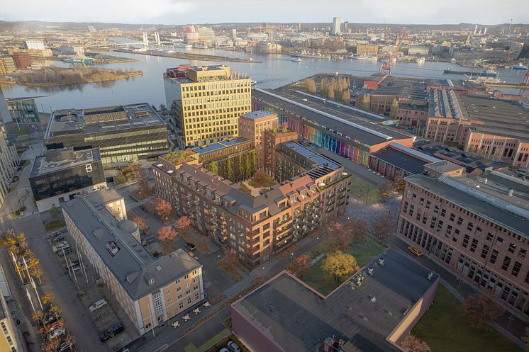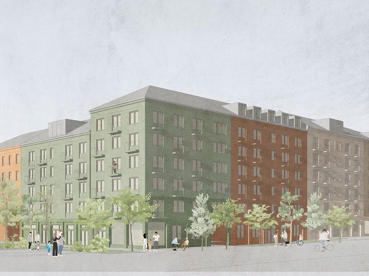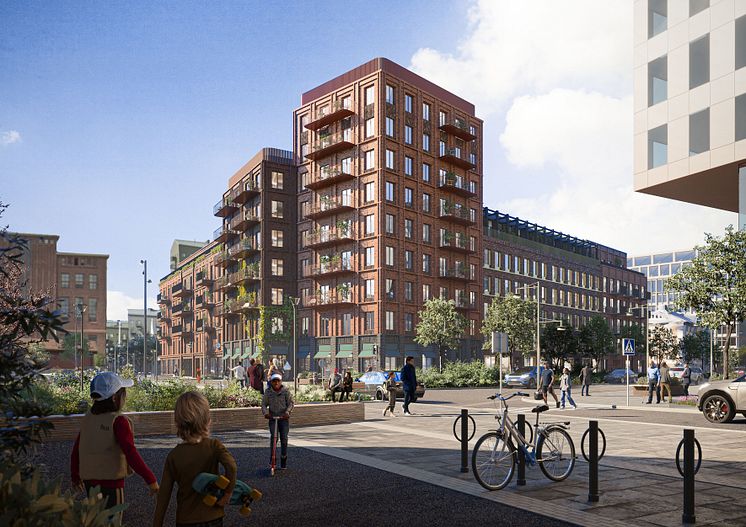Inom planområdet föreslås ett nytt storkvarter med cirka 205 bostäder. Bebyggelsens placering utmed gatorna ger mer stadsmässiga kvaliteter så som ett tydligare definierat gaturum, där entréer och verksamheter i bottenvåning ger potential till ett mer aktivt stadsliv. Kvarterets utformning bidrar till att skärma av de omgivande gatorna, vilket skapar en bättre boendemiljö avseende trafikbuller och luftmiljö.