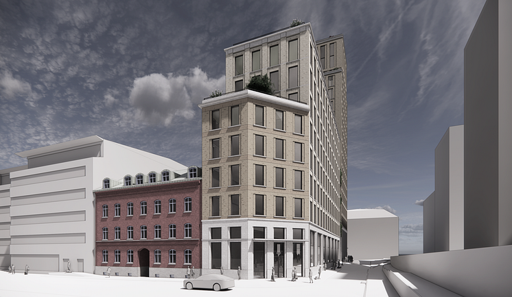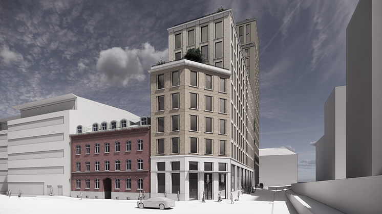 Ett nytt flerbostadshus vid Masthuggstorget med 114 lägenheter föreslås få positivt bygglov. Husets bottenvåning ska inrymma verksamheter och de första två våningarna kontor. Byggnaden består av två sammanflätade vertikala byggnadskroppar som är placerade på en podiedel. Fasaderna är av tegel med skiftande röda nyanser i ett symmetriskt rutmönster med horisontella öppningar för fönster och balkonger samt med inslag av plåt och trädetaljer. Det nya huset är en del i utvecklingen av Masthuggskajen.