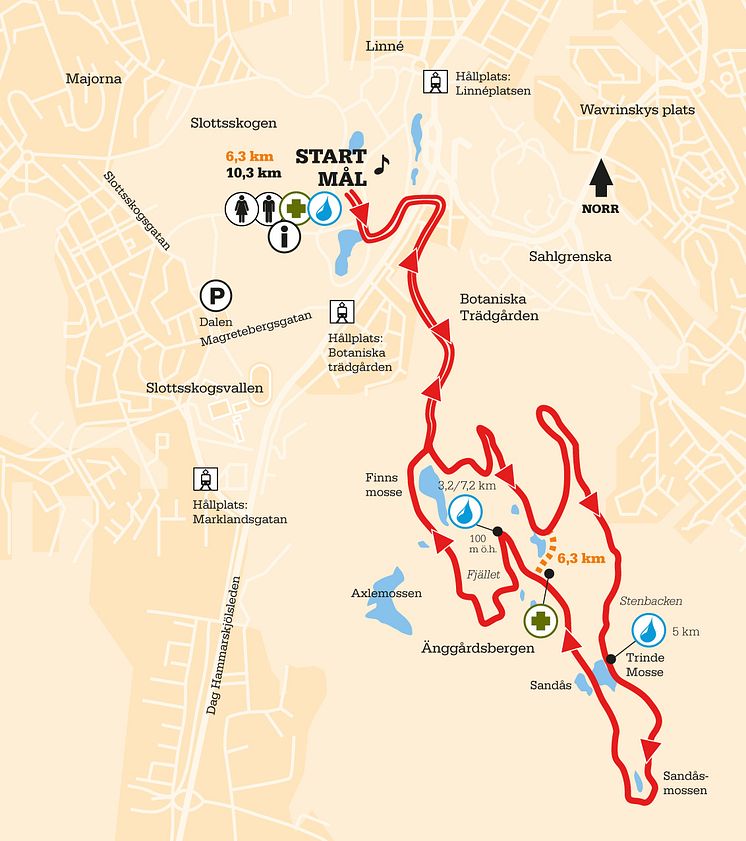 TrailVarvet mäter 10,6 kilometer. Det finns även en promenadklass utan tidtagning, där deltagarna kan välja att gå 6,7 eller 10,6 kilometer.