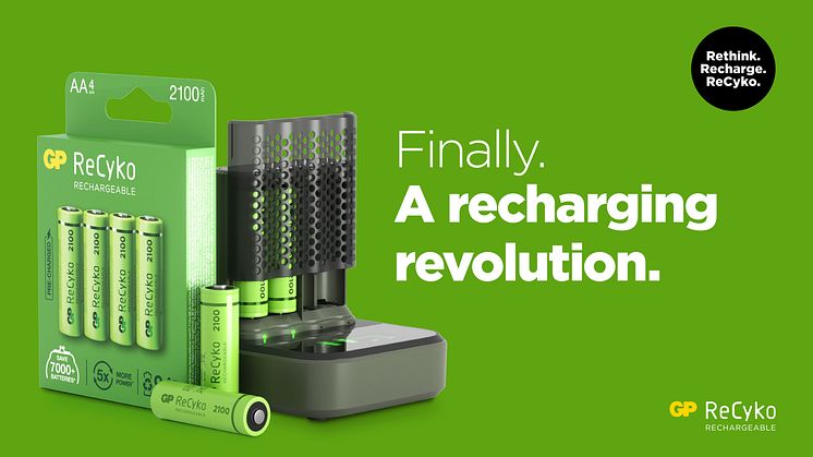Batteritillverkaren GP vill inspirera fler att ladda batterierna – och göra skiftet till en mer hållbar batterianvändning 2021. En ny generation laddningsbara batterier, GP ReCyko, kan ersätta tusentals engångsbatterier per hushåll. Samtidigt måste svenskarna bli bättre på att återvinna. Fortfarande återvinns knappt 2 av 3 alkaliska engångsbatterier för privat bruk.