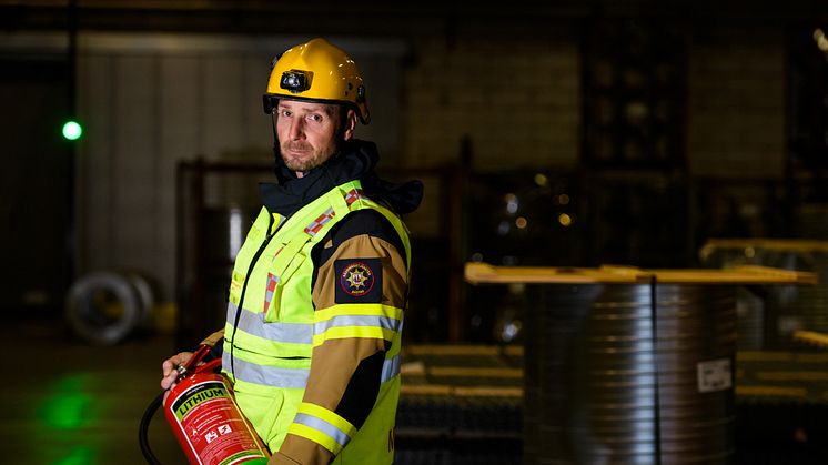 Pelle Pettersson på Räddningstjänsten i Båstad berömmer initiativet och tycker att Lindab har ett högt risktänkande. Tyvärr är inte risktänkandet kring batteribränder lika högt överallt.