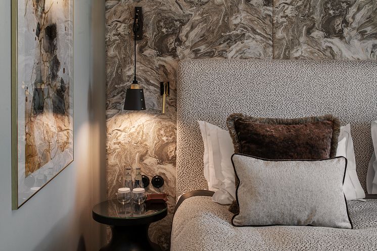 Renoverade rum och sviter på våning 5 och 6, Grand Hôtel Stockholm. Rummen och sviterna renoverades under 2022. Inredare: Fanny Widén