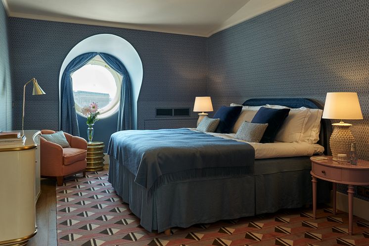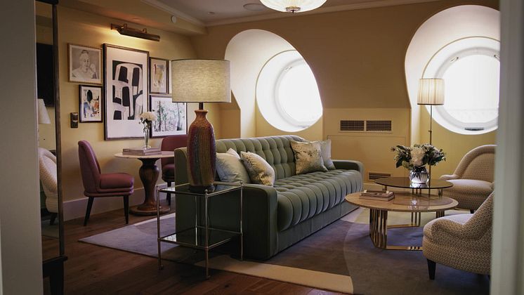 Sviterna ligger högst upp i hotellets huvudbyggnad, med utsikt över Strömkajen och Stockholms slott. Efter en hel vår av renovering är de nu klara att visas upp. Bakom den nya inredningen står en av världens mest prisade inredningsarkitekter, den svenskfödde doldisen Martin Brudnizki. Ett hedersfyllt uppdrag som gläder Grand Hôtel, som får vara först i Sverige med att samarbeta med den London- och New York baserade arkitekten.