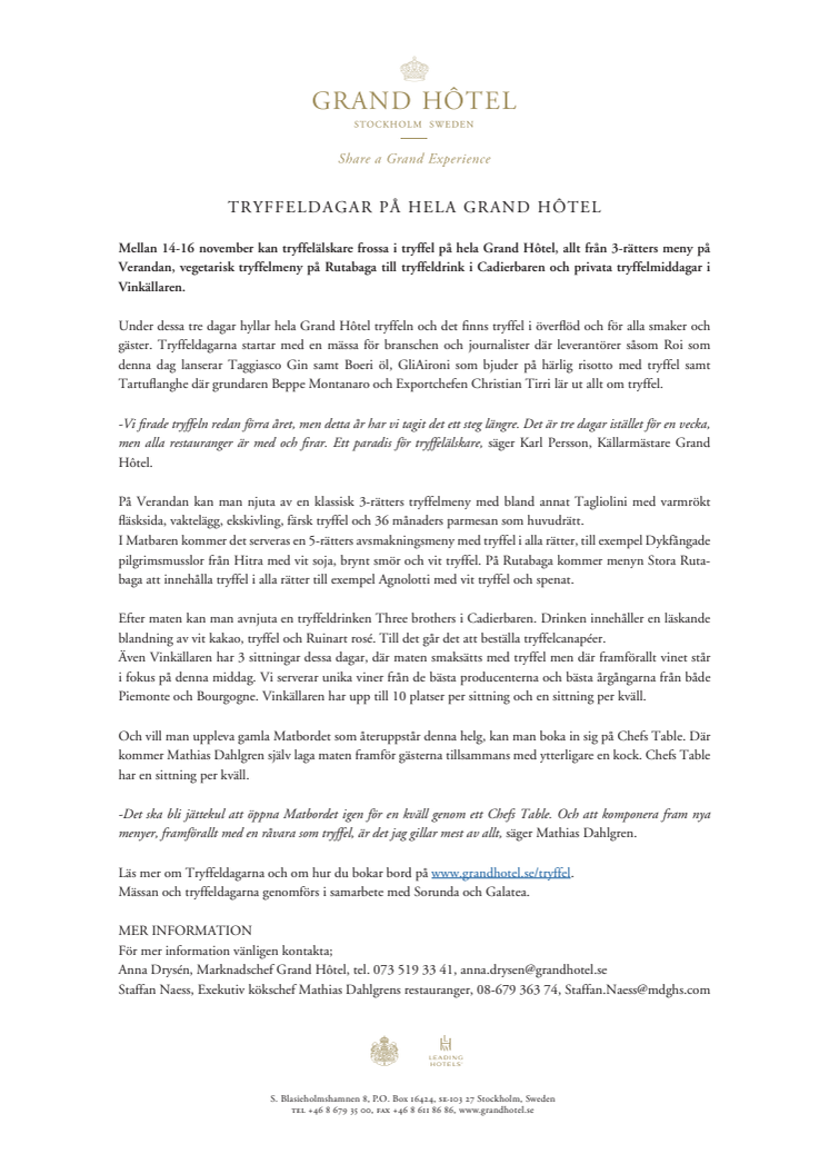 Läs mer om Tryffeldagarna och om hur du bokar bord på www.grandhotel.se/tryffel.