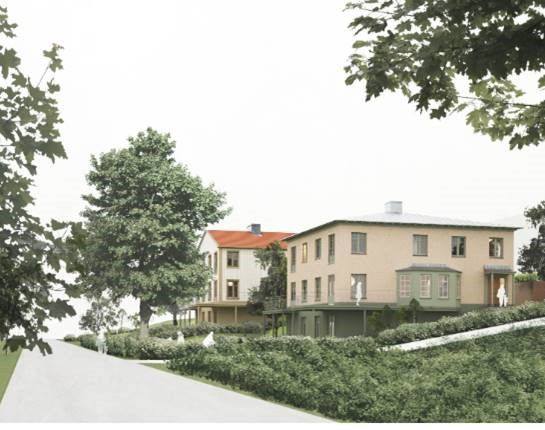 Brf Lyckoterrassen, vy från Trädgårdsvägen