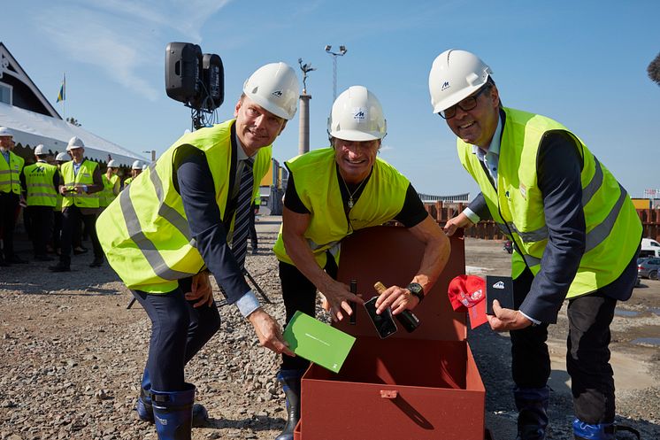 Byggstarten av Clarion Hotel SeaU Helsingborg firas genom att en tidskapsel med föremål från 2017 gjuts in i husgrunden.