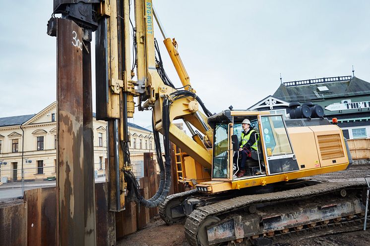 Peter Danielsson slår ner sista sponten inför nybyggnadsprojektet SeaU Helsingborg som utvecklas av Midroc.