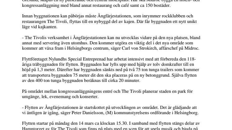 - The Tivolis verksamhet i Ångfärjestationen kan nu utvecklas vidare på den nya platsen, bland annat med servering även utomhus. Den kommer utgöra en viktig del i det nya område som kommer att växa fram i Helsingborgs centrum, säger Carl von Strokirch, affärschef på Midroc.