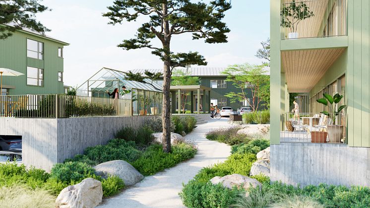 Mellan husen kommer det att finnas gott om gemensamma utemiljöer med allt ifrån växthus och odlingslådor till gemensam grillplats och redskapsbod. Det öppnar i sin tur upp för umgänge och rekreation i området.
