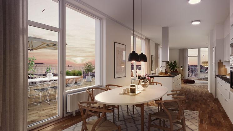 1-6 rum och kök, 24-187 kvm. Många lägenheter har utsikt över Öresund.