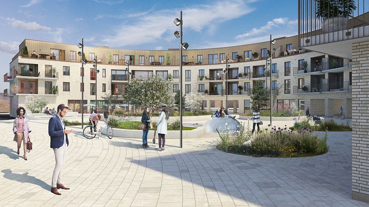 I centrala Bjärred växer en ny plats fram med bostäder, lokaler, torg och en ny vägsträckning som fastighetsbolaget Granitor utvecklar i nära samarbete med Lomma kommun och Juul|Frost Arkitekter.