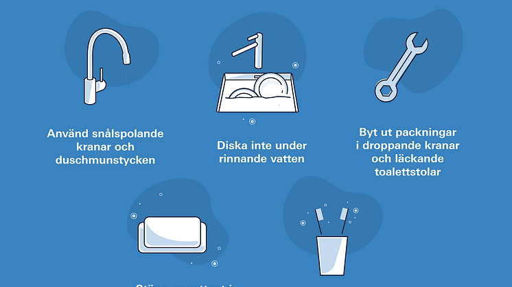 - Byt ut packningar i droppande kranar och läckande toalettstolar