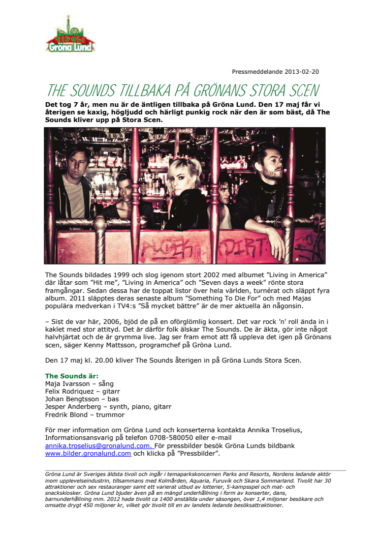 Det tog 7 år, men nu är de äntligen tillbaka på Gröna Lund. Den 17 maj får vi återigen se kaxig, högljudd och härligt punkig rock när den är som bäst, då The Sounds kliver upp på Stora Scen.