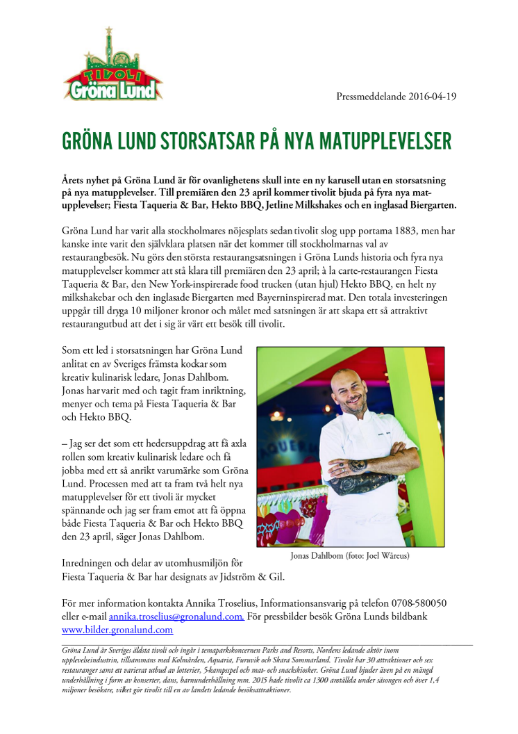 För mer informationkontakta Annika Troselius, Informationsansvarig på telefon 0708-580050 eller e-mail annika.troselius@gronalund.com.För pressbilder besök Gröna Lunds bildbank www.bilder.gronalund.com