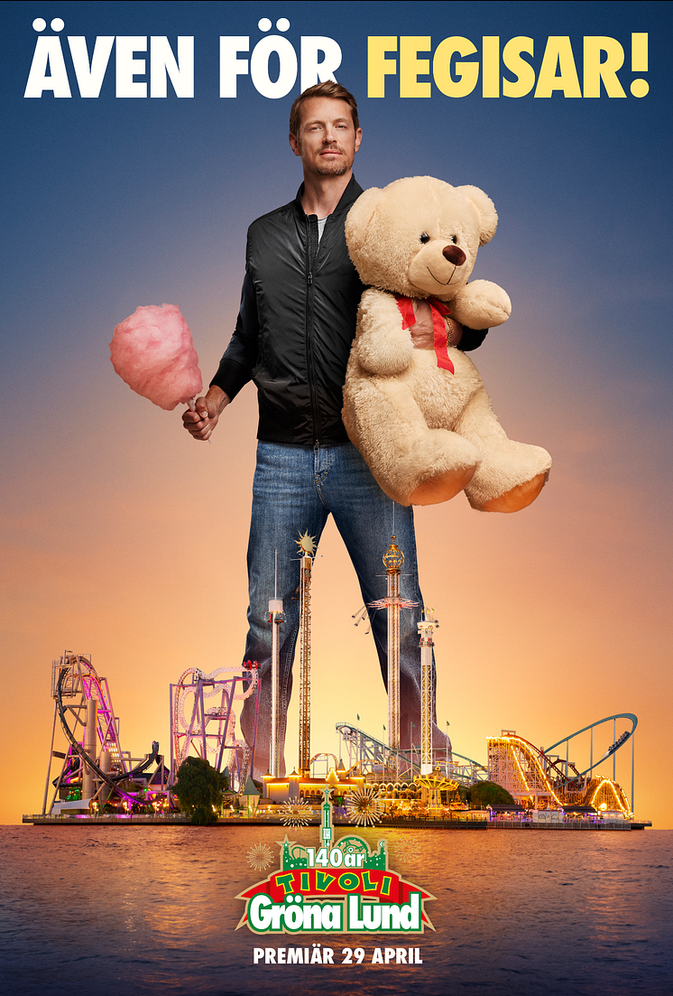 Idag är det premiär för Gröna Lunds årliga reklamkampanj, där konceptet ”Även för fegisar” leker med stereotypen av vilka vi förväntar oss ska vara modiga. Gröna Lund erbjuder massor av upplevelser och känslor, men det som många kanske kopplar ihop oss allra mest med är ”action”, allt ifrån höga höjder och fria fall till snabba åk och snurr. Vem skulle då inte vara bättre som ansiktet utåt än en äkta actionhjälte från Hollywood. Dessutom en actionhjälte som älskade Gröna Lund som barn, Joel Kinnaman. Under inspelningen av reklamfilmen visade det sig dock att livet på andra sidan Atlanten har förändrat saker. Allt är inte som det verkar, modiga actionhjältar har ”body doubles” och är inte alls så oövervinnerliga som man kan tro. Men för oss på Grönan gör det inget.