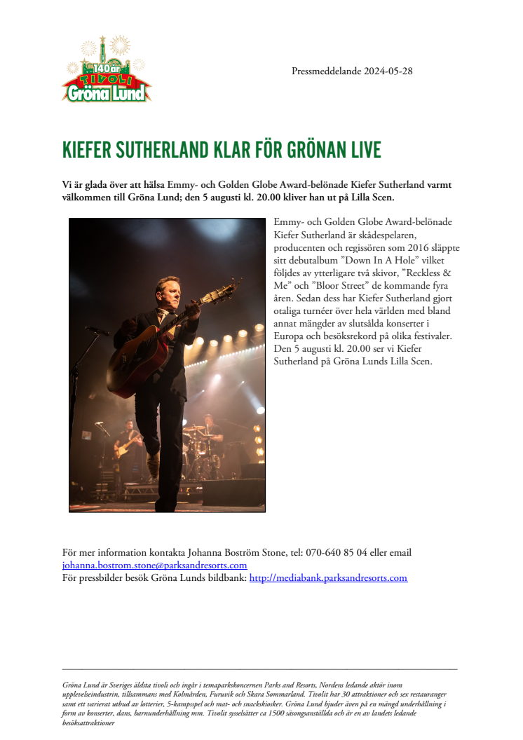 För pressbilder besök Gröna Lunds bildbank: http://mediabank.parksandresorts.com