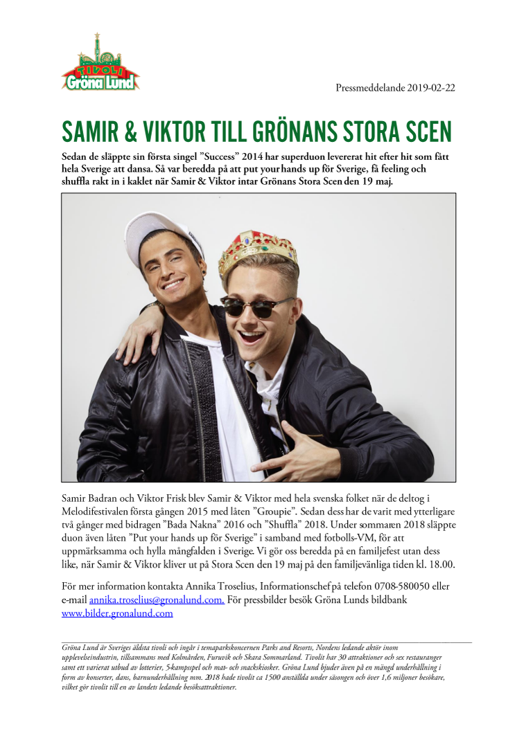 För mer information kontakta Annika Troselius, Informationschef på telefon 0708-580050 eller e-mail annika.troselius@gronalund.com.För pressbilder besök Gröna Lunds bildbank www.bilder.gronalund.com